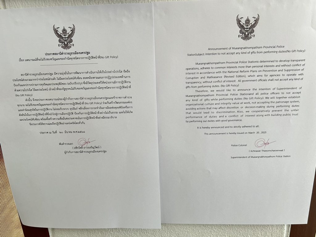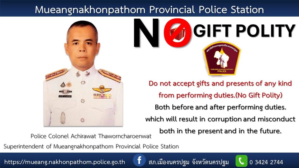 เจตนารมณ์ที่จะไม่รับของขวัญและของกำนัลทุกชนิดจากการปฏิบัติหน้าที่ (No Gift Policy) ฉบับภาษาไทย