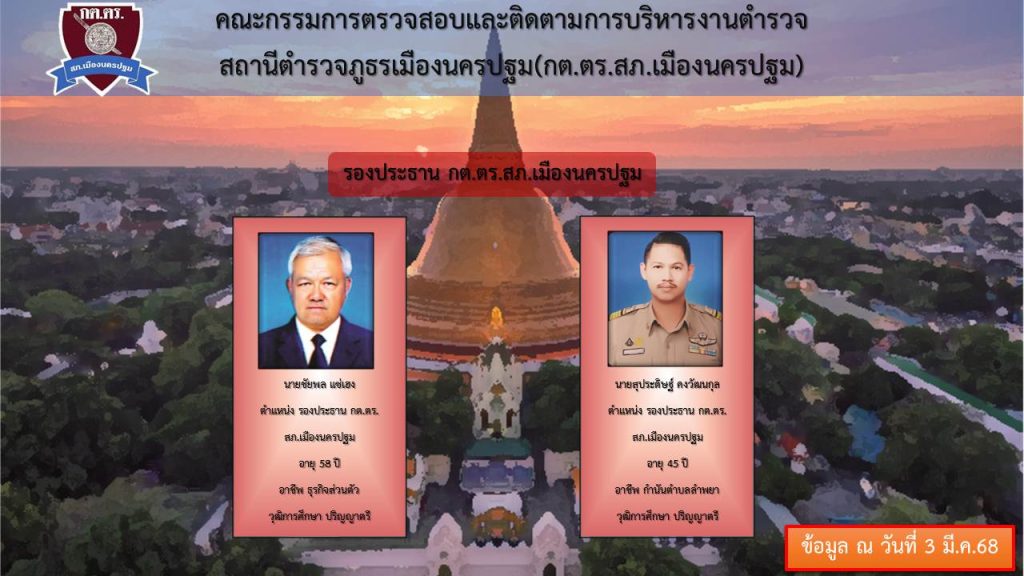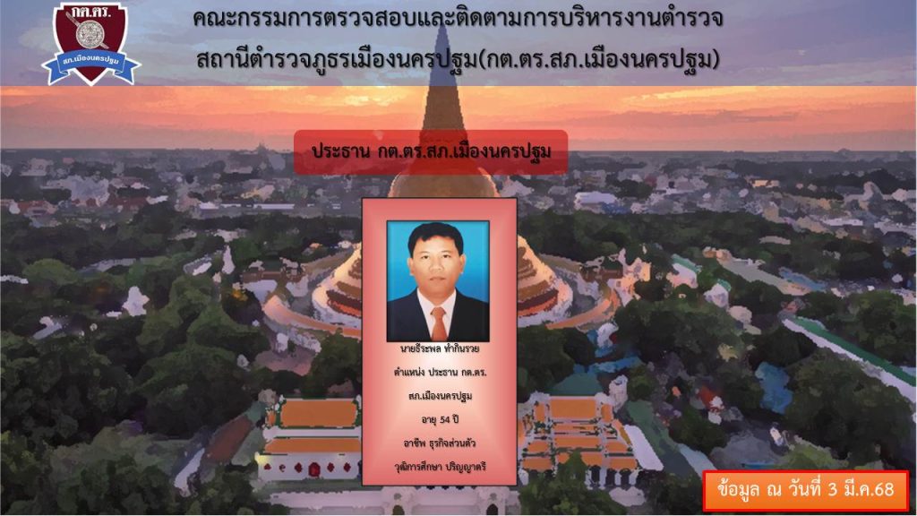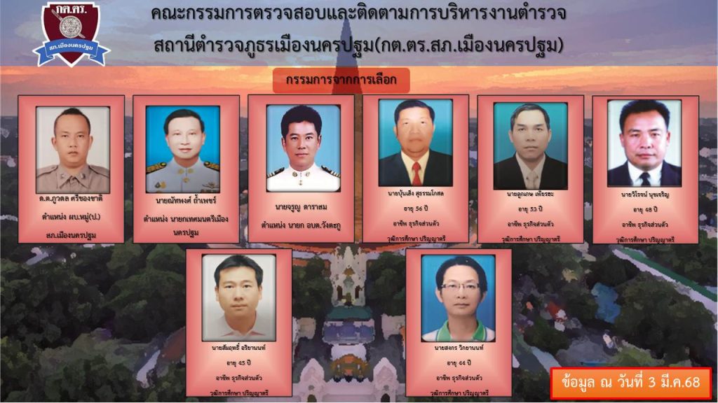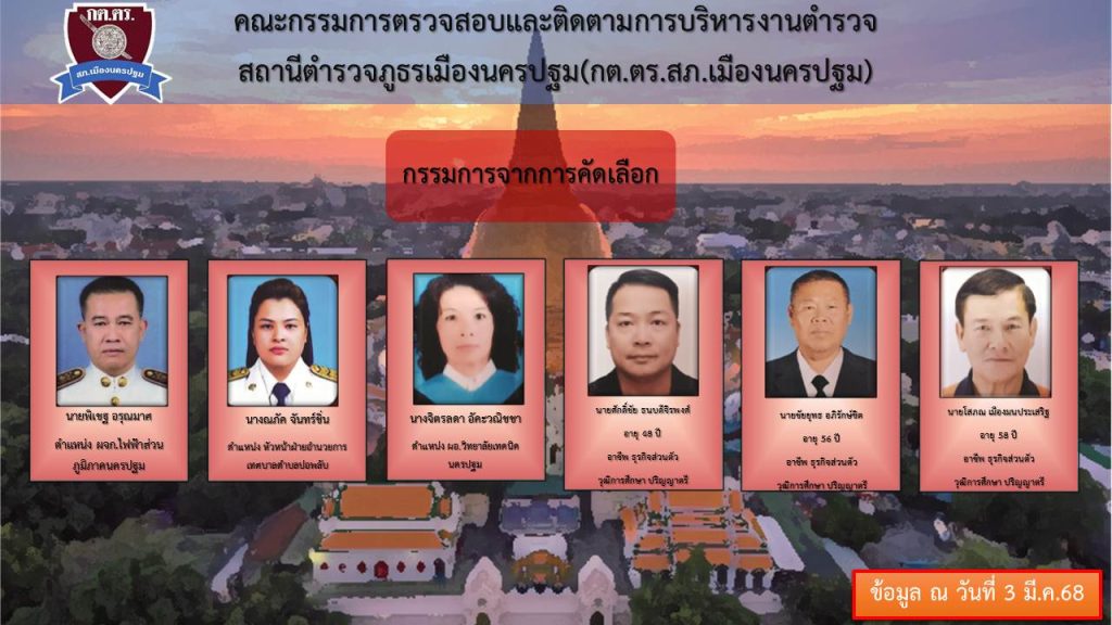 คณะกรรมการตรวจสอบและติดตามการบริหารงานตำรวจ (กต.ตร. ) สภ.เมืองนครปฐม ข้อมูล ณ 3 มี.ค.68